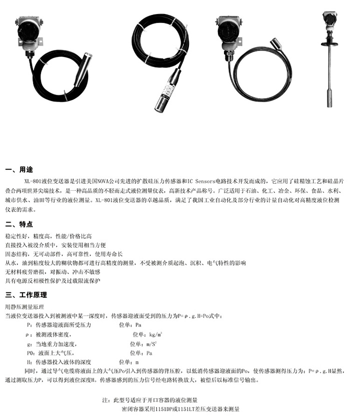 XL-801C不銹鋼投入式液位變送器