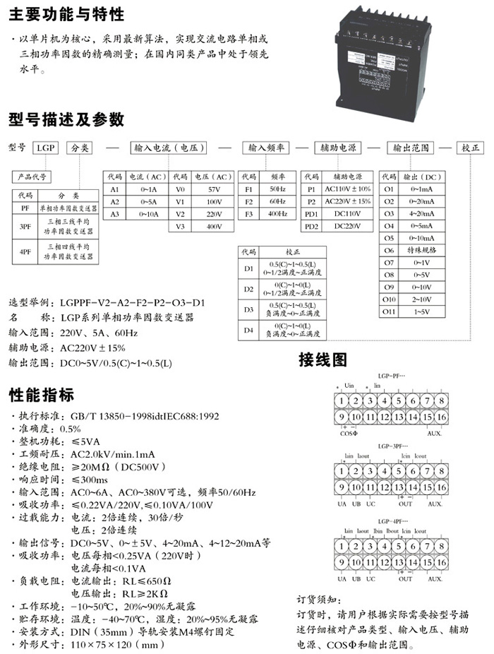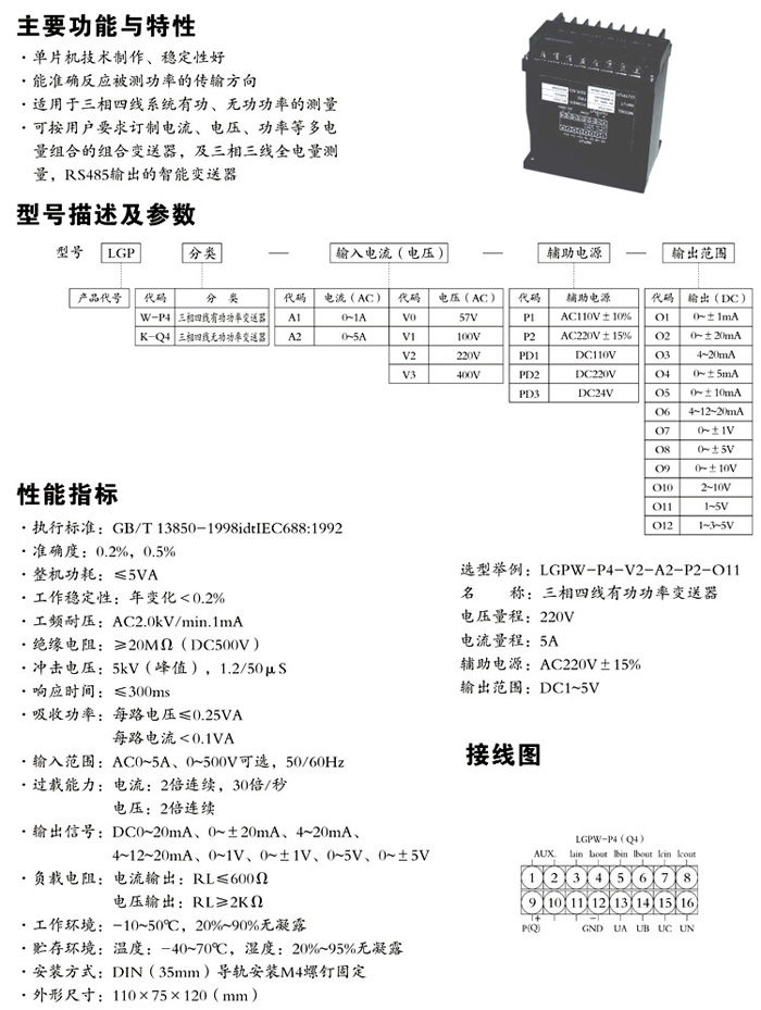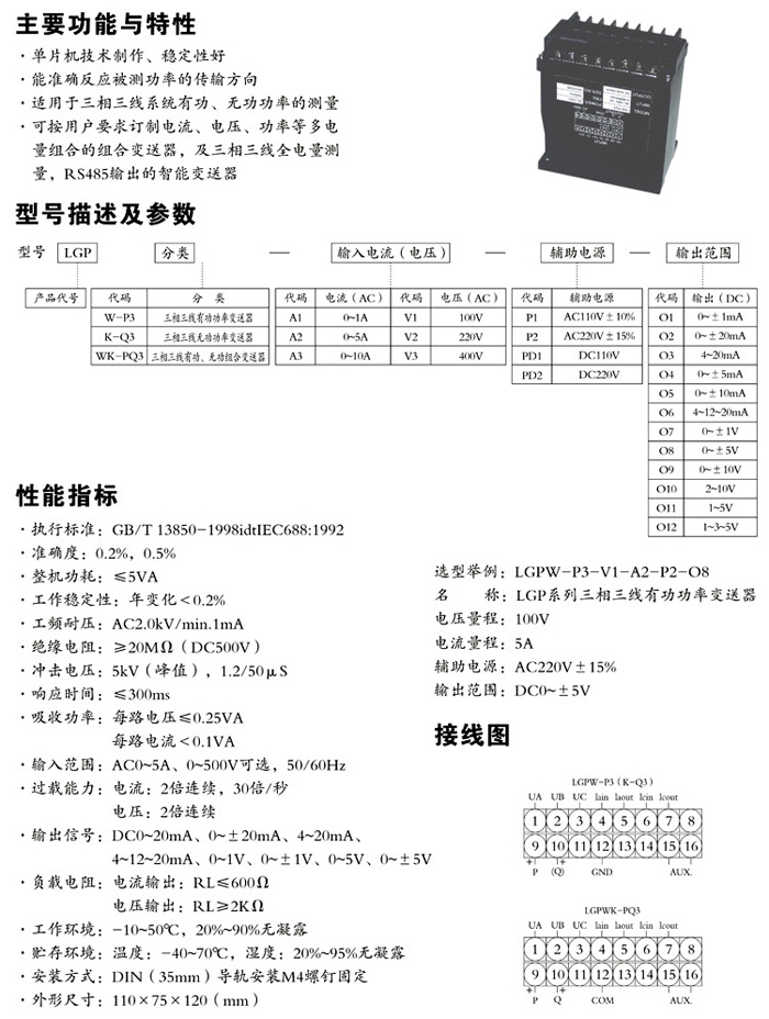 LGP系列有功(無(wú)功)功率及功率因數(shù)變送器