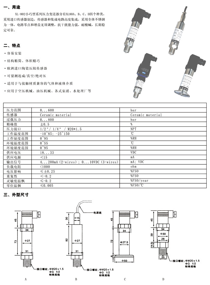 XL-802A小巧型擴(kuò)散硅壓力變送器